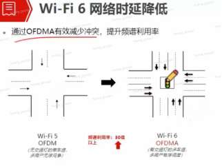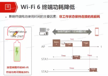 WiFi-6网络时延降低,通过OFDMA又效减少冲突,提升频谱利用率。WiFi-6终端功耗降低,影响终端电池使用时间的主要因素:非工作状态保持连接的高能耗。