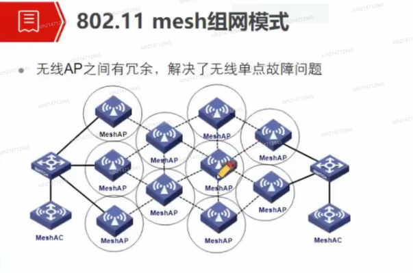 802.11 mesh组网模式,无线AP之间有冗余,解决了无线单点故障问题。