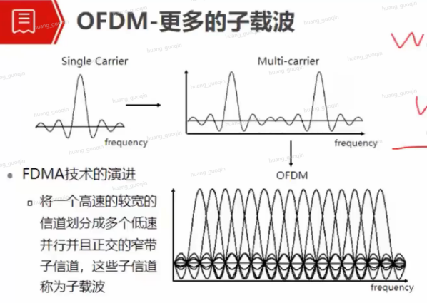 将个高速的较宽的信道划分成多个低速并行并且正交的窄带子信道,这些子信道称为子载波。