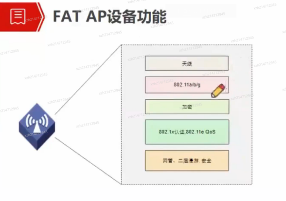 胖接入点FAT AP(FAT Access Point):在自治式网络架构中提供STA的无线接入服务,除了提供基本的无线连接功能外,还能提供安全和管理等增强功能。