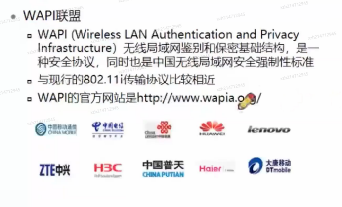 初期的时候我们第一要考虑它的安全,所以专门成立了WAPL联盟。只要您进入中国这个大市场,所有的WiFi终端都需要支持中国方案的WAPl。WAPl就是我们中国所提出的802.11 i,是在WiFi里面提供网络安全的一个标准。802.11 i它是美国IEEE提出的安全标准,我们中国是WAPl,现有的设备你既可以支持802.11 i,也需要支持中国的WAPl。但具体去应用的时候,我们中国比较开放,使用权还是归用户所有。