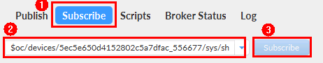 (5)选择“Subscribe”页签,看到平台下发的设备影子数据。