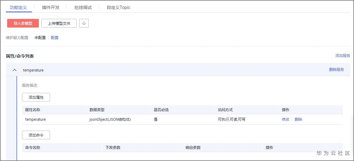 2.上传产品模型(编解码插件):产品模型定义了设备的基本属性和命令。您可以通过控制台在线开发产品模型,通过模板离线开发产品模型再上传到控制台,也可以导入公共产品库的模型。通过前面几个示例,您应该发现当设备若采用二进制上传方式时,需要开发编解码插件上传到平台;若采用Json数据格式上传,则无需编解码插件。