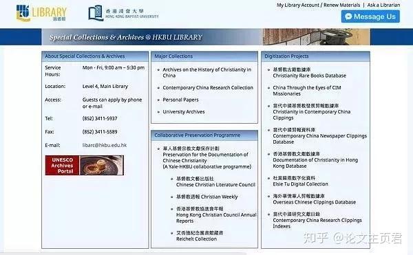 ■香港浸会大学特藏在华人基督教和当代中国研究等方面,有较多材料。部分已建置的数据库可见: