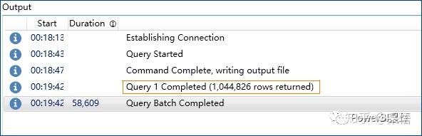 从这个输出信息可以看出,导出的数据量超过104万行,不过导出耗费的时间也比较长,用了58秒。