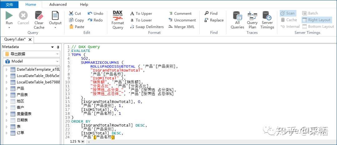 我们并不想动手去修改代码,那么还有个简单的方法,就是使用DAX Studio。这个代码语句可以直接在DAX Studio中使用,关于DAX Studio的使用方法参考: