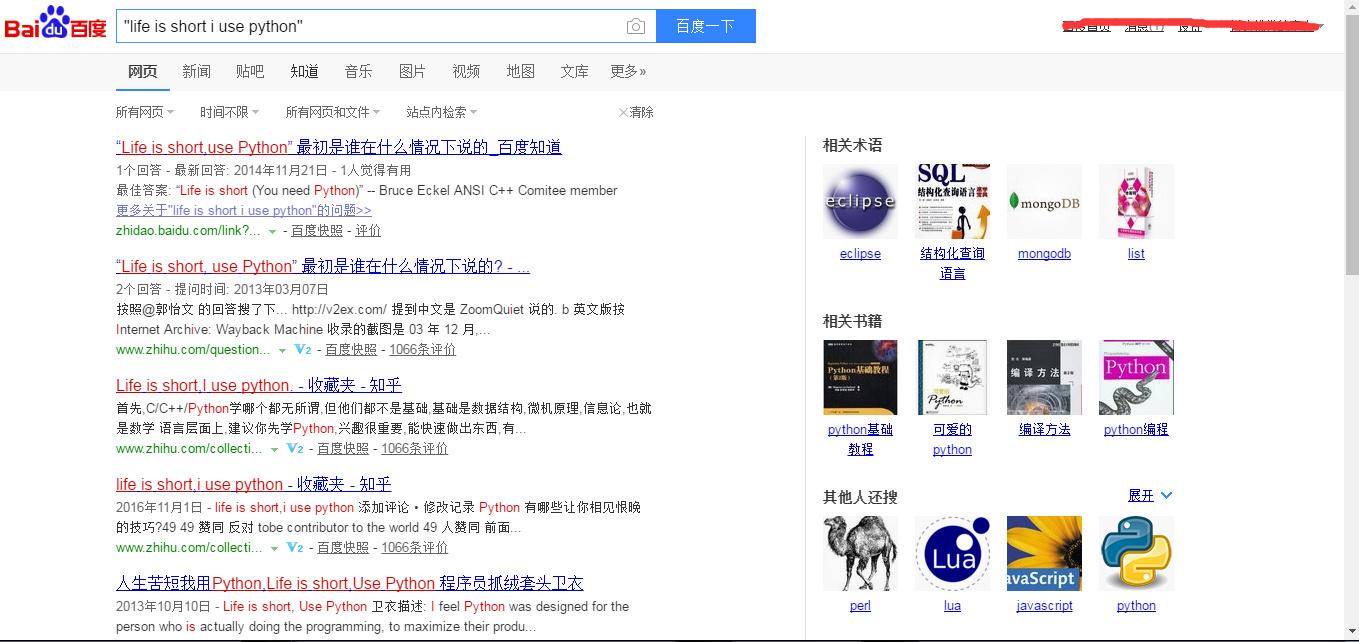 精确搜索,就是在你要搜索的词上,加上双引号,这个 Baidu 搜索引擎,就会完全的匹配你所要的词