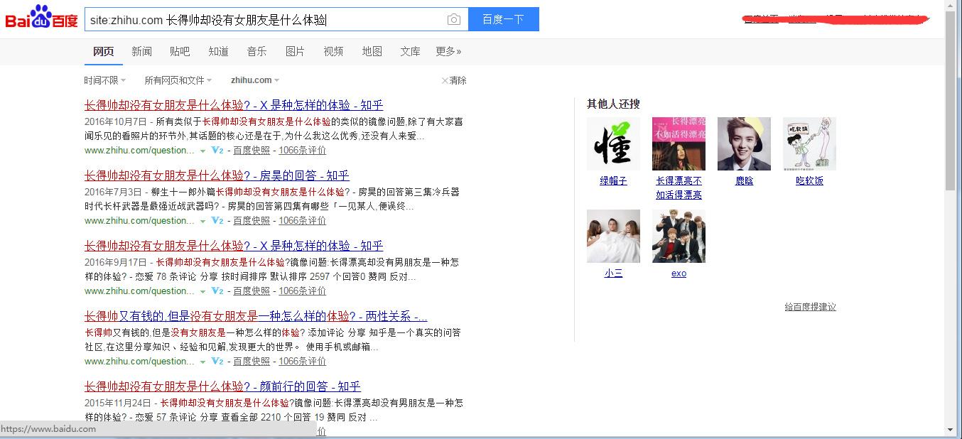 这个也是跟谷歌一样,比如搜知乎的内容,site:http://zhihu.com 长得帅却没有女朋友是什么体验