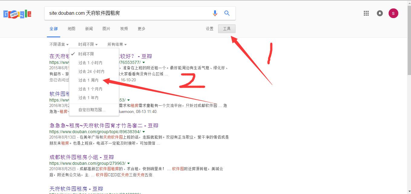 光这样,还远远不够的,毕竟有些房子是发布了好久,那有没有办法搜索最近几天的租房信息呢,有的,见图