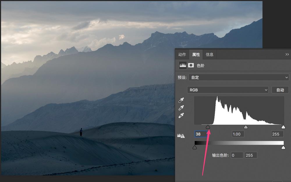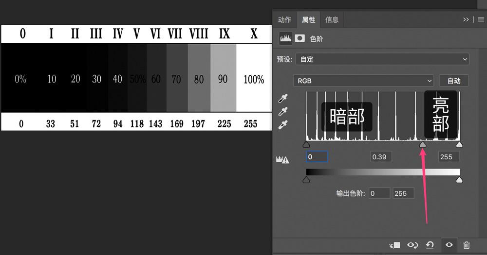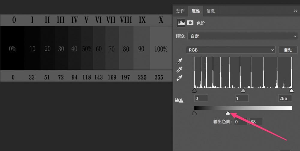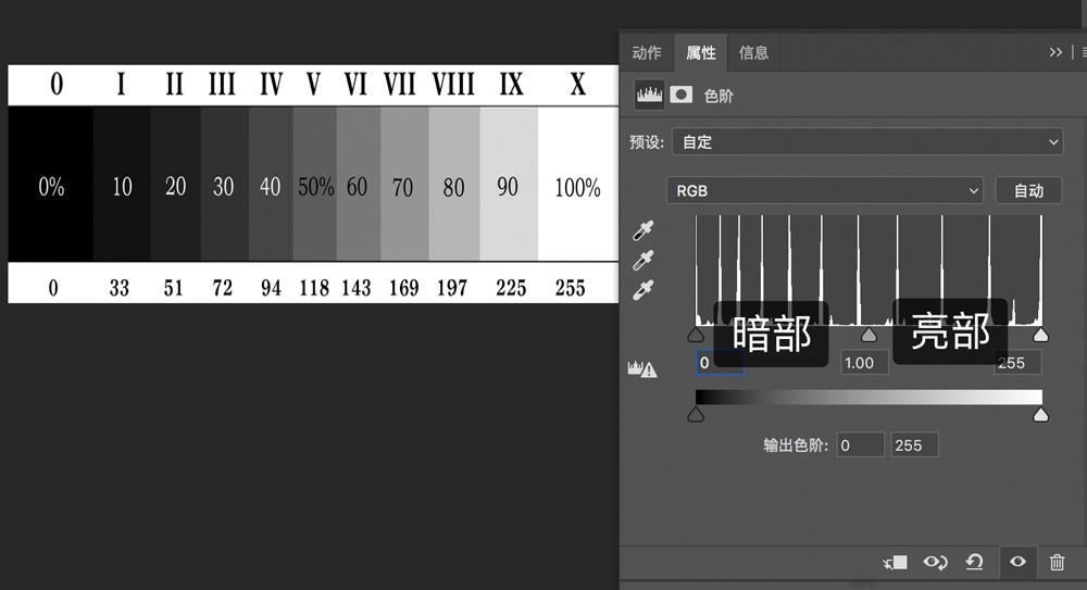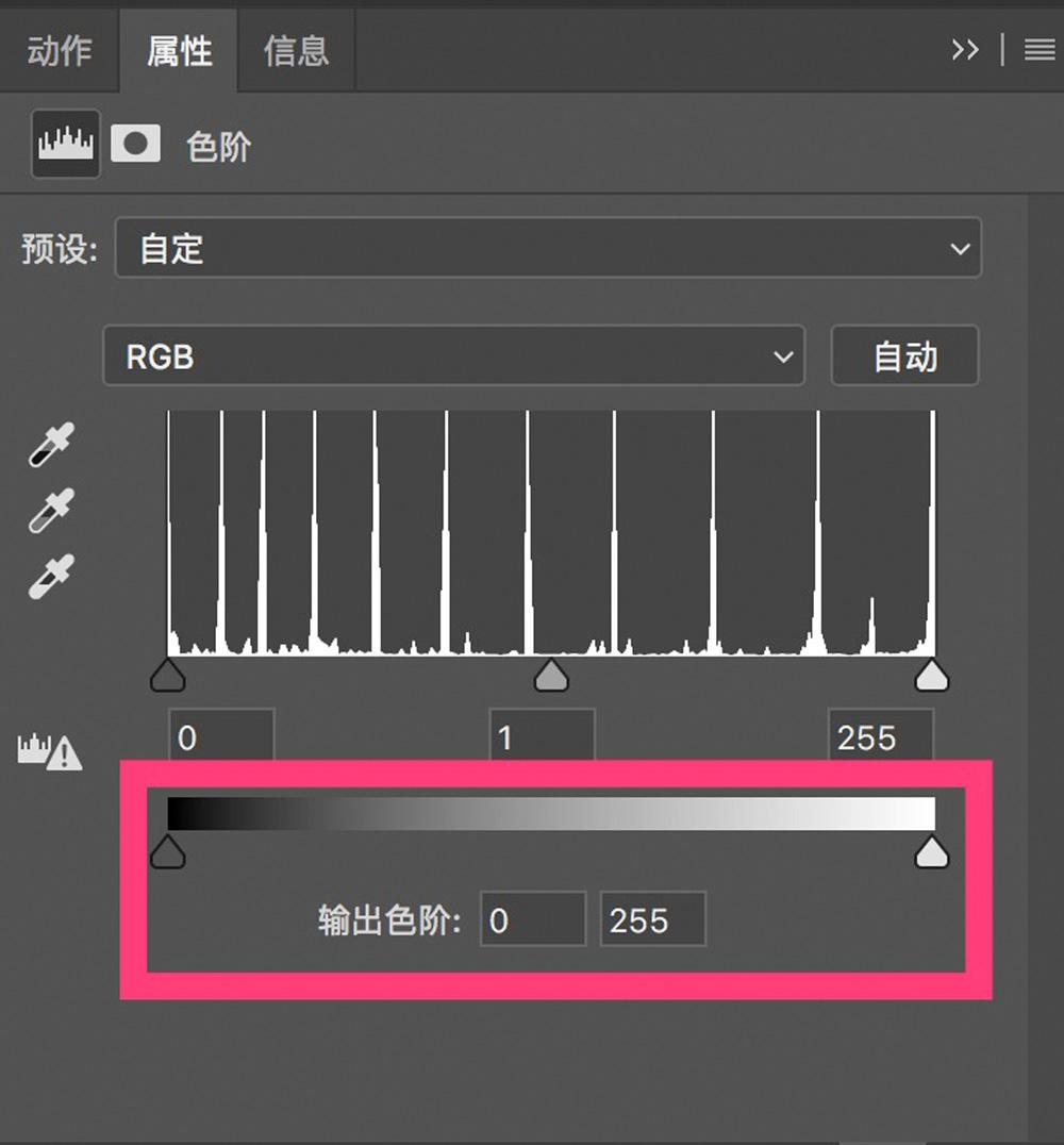 默认的输出色阶是0到255。也就是调整后的照片,最暗的部分亮度可以是0(纯黑),最亮的部分亮度可以是255(纯白)。
