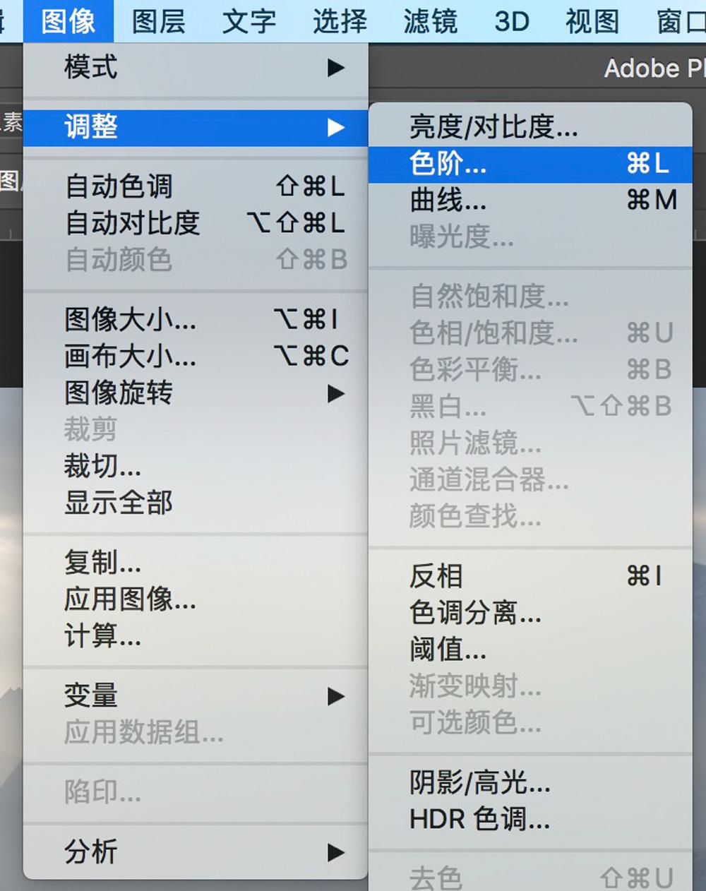 和曲线、可选颜色等调整一样,色阶有两种打开方式: