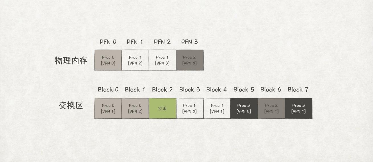 因此,如果我们可以先把那些暂时用不到的页先存在磁盘上,等需要用到时再加载到内存上,那么就可以节省很多物理内存。磁盘中用来存放这些页的区域,被称作Swap Sapce,也即交换区。