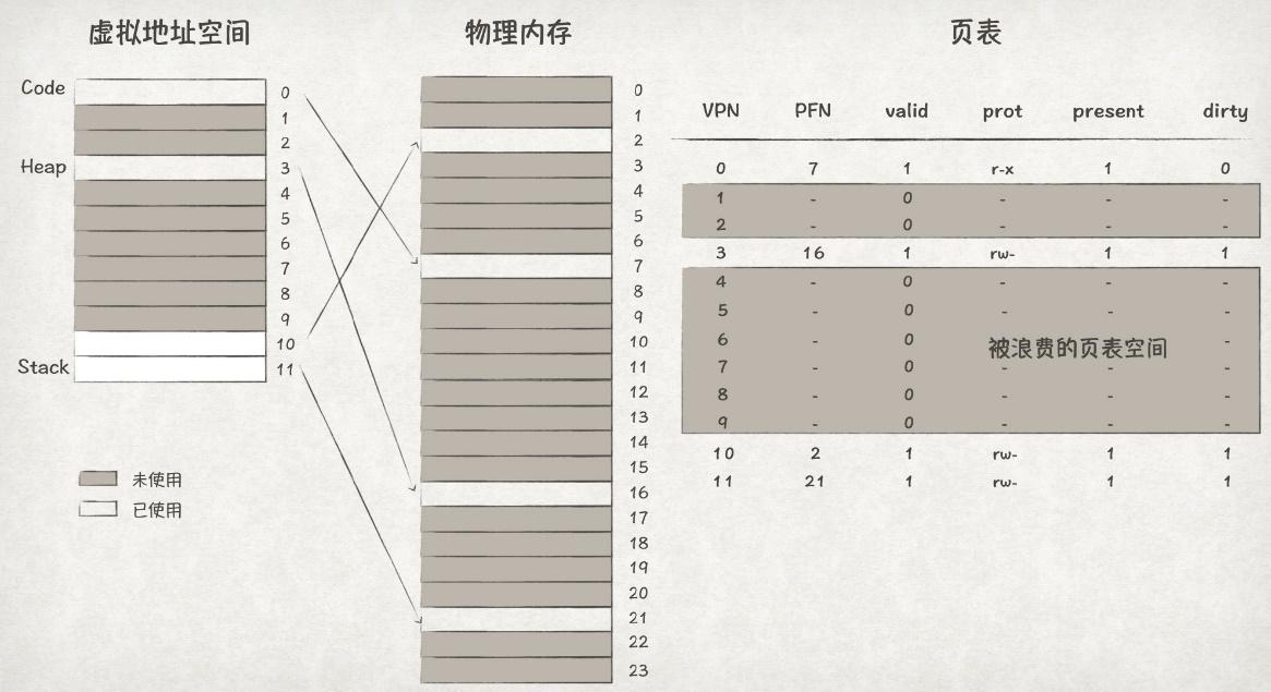 根据前文所述,程序的地址空间中,堆与栈之间的空间很多时候都是处于未使用状态。对应到页表里,就是有很大一部分的PTE是invalid状态。但因为页表要涵盖整个地址空间的范围,这部分invalid的PTE只能留在页表中,从而造成了很大的空间浪费。