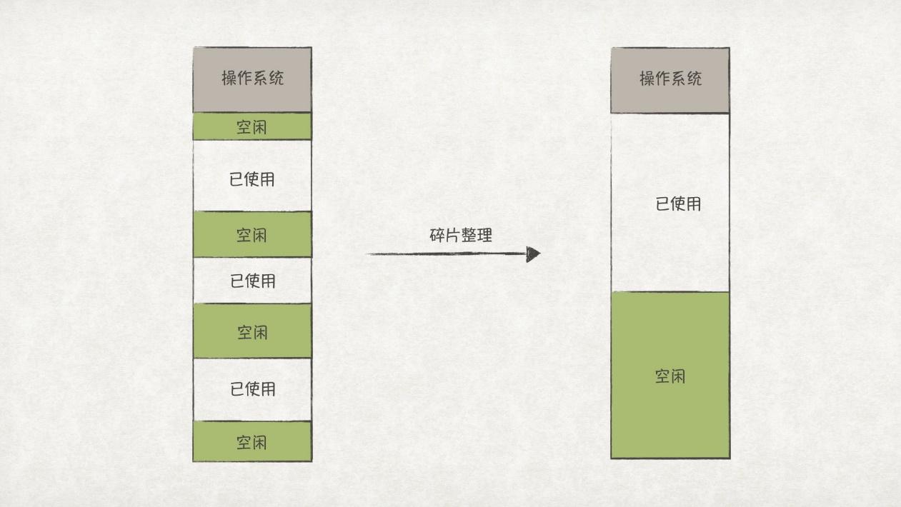 解决内存碎片的方法之一是定时进行碎片整理: