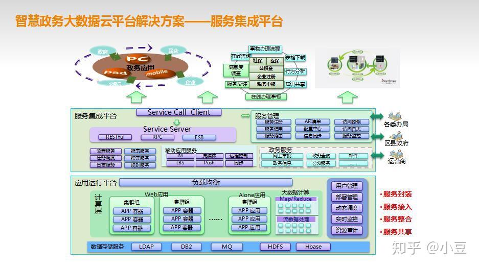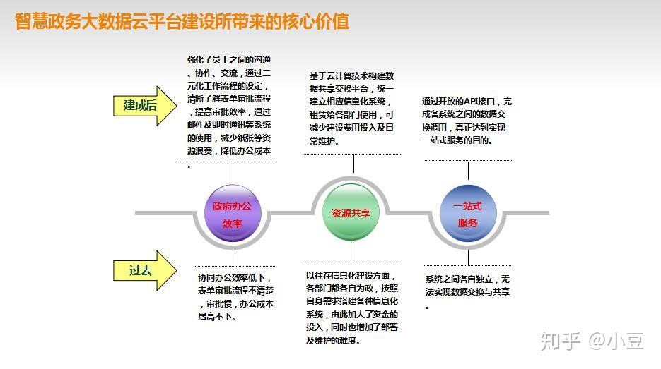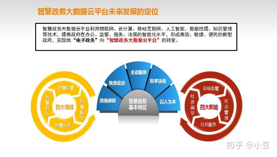 随着国家政策的发布,大数据已经成为国家战略的高度。各级政府在做电子政务,特别是做互联网+政务的时候,有了很迫切的需求,我们可以从这几个政策里面看到,其实从2016年“十三五”规划到“互联网+”,2016年互联网+政务服务的推出,核心观点是,今后的政务建设一定是基于“互联网+”,基于创新、共享和协调的方式。2017年,“十三五”信息化工程建设里面重点提了,在今后重点以两网一平台,四库、六系统重大政务信息化工程建设。
