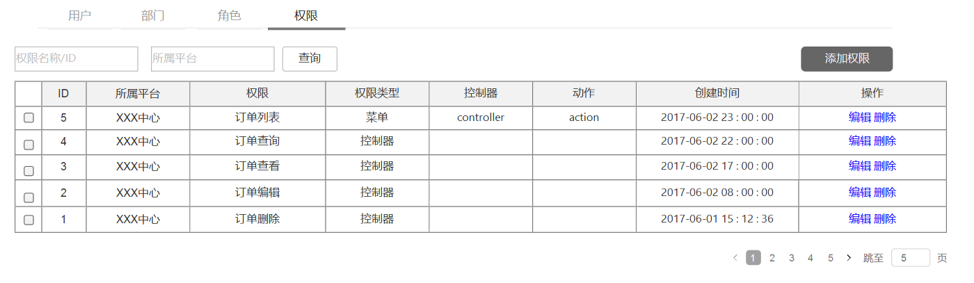 这么操作很顺利,部门-角色-权限-用户该有的都有的,可新建可编辑可删除,看着一切都很自由,但!是!对于权限单独的管理不见了?往回看,角色赋权-管理权限那个界面,假如“行业”这个功能要取消了?可怎么办?这个时候我们就需要对权限进行管理,因而会有一个看起来很计算机的权限管理模块。