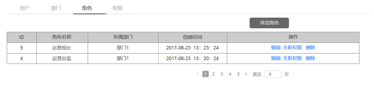 有了整体的部门架构,那么每一部门对应的角色有哪些呢?同个部门中,是否有多个角色呢?所以就需要角色管理(添加、编辑、删除角色)来管理每个部门中的角色及角色的数据权限范围。比如:运营部中,有运营总监(可查看到整个部门所有人的数据)、运营组长(可查看运营A组的本组全部数据)、运营专员(可查看个人数据)。那么一个运营部门至少就有三种角色:运营总监、运营组长、运营专员,三种角色也对应三种不同的权限。