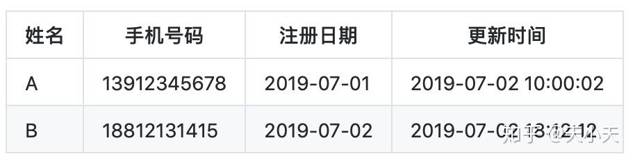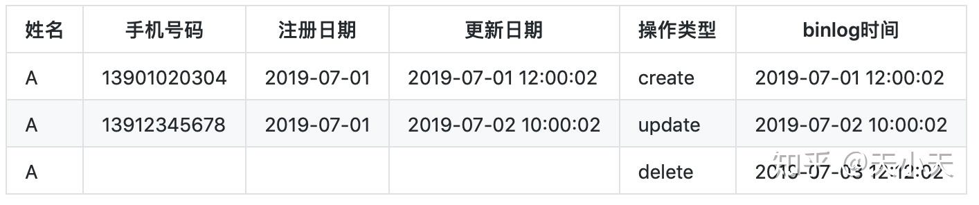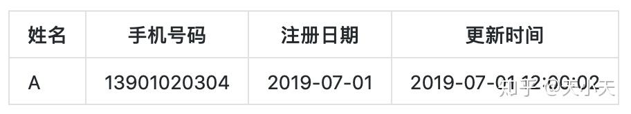 一条是更新手机号之前(即2019-07-01日)的记录,并且失效时间更改为2019-07-02