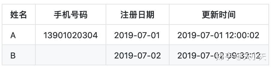 - 2019-07-02日用户B注册但是手机号码未填写