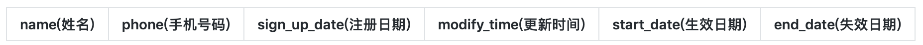 其中相对于原始表增加两个字段分别为:生效日期和失效日期,这两个字段代表每条记录的有效区间