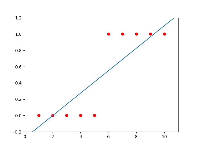我们先按照线性回归的思路来拟合出一条直线,如下图