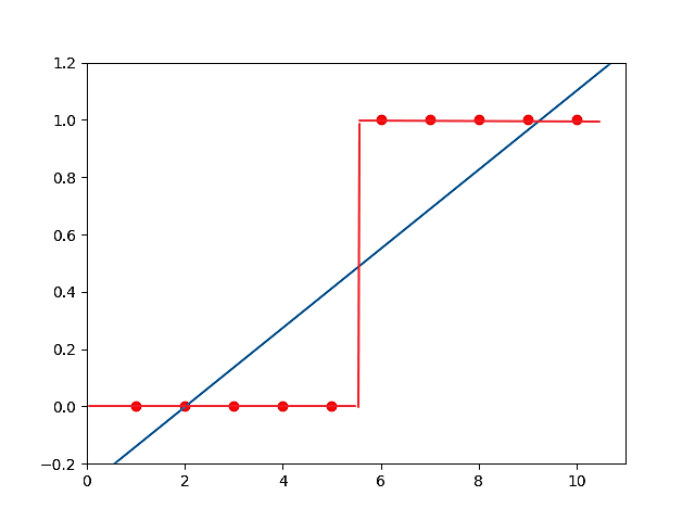 由于是二元分类问题,我们判断当h(x)>0.5时,y=1;当h(x)<0.5时,y=0;画出来差不多是这么个样子