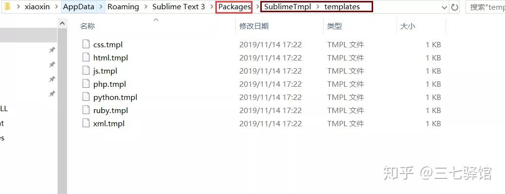 相应的模板为tmpl格式的文件,保存在Packages 目录中 SublimeTmpl\templates 下: