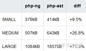 单次编译的测试结果可能并不能代表实际使用的情况,以下是使用 PhpParser 进行完整项目测试得到的结果: