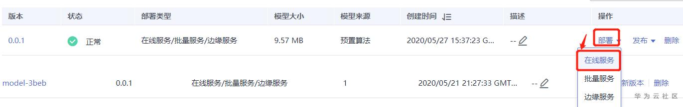 这里以CPU为例。单击部署,选择在线部署。