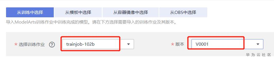 前面的训练作业名称是随机的,选择就好,应该选择导入后,自动选择的就是刚才训练的了。点击右下角的立即创建,等待导入。