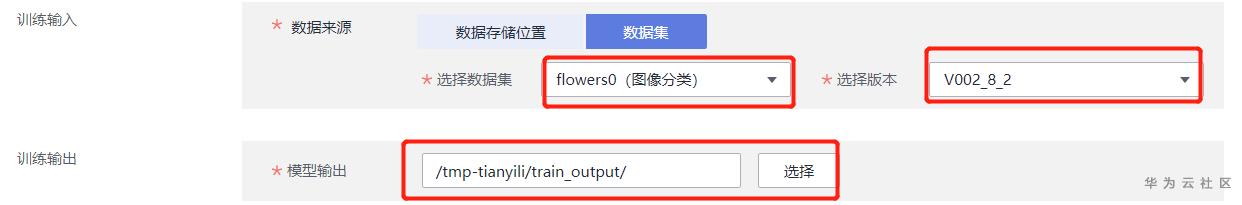这里选择我们刚才创建的数据集和对应版本号就行,这里我用的是以前创建的数据集,所以数据集名称和版本号和前面创建的不一样,你选择自己刚才创建的就好,同时,还要创建一个空文件夹存放训练输出,至于训练日志,可以不选择存放路径。