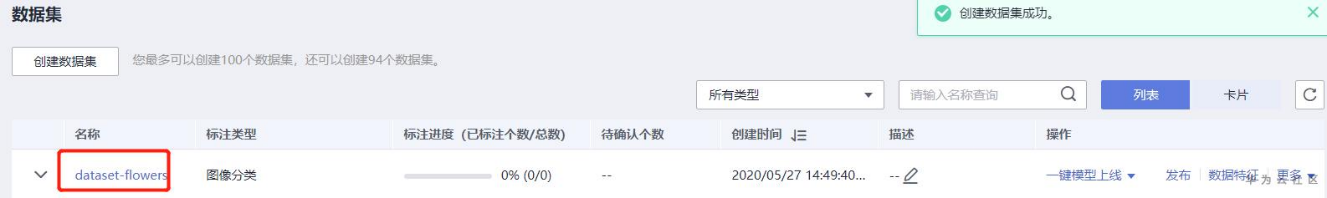 回到“数据管理”->“数据集”界面,点击刚才创建的数据集