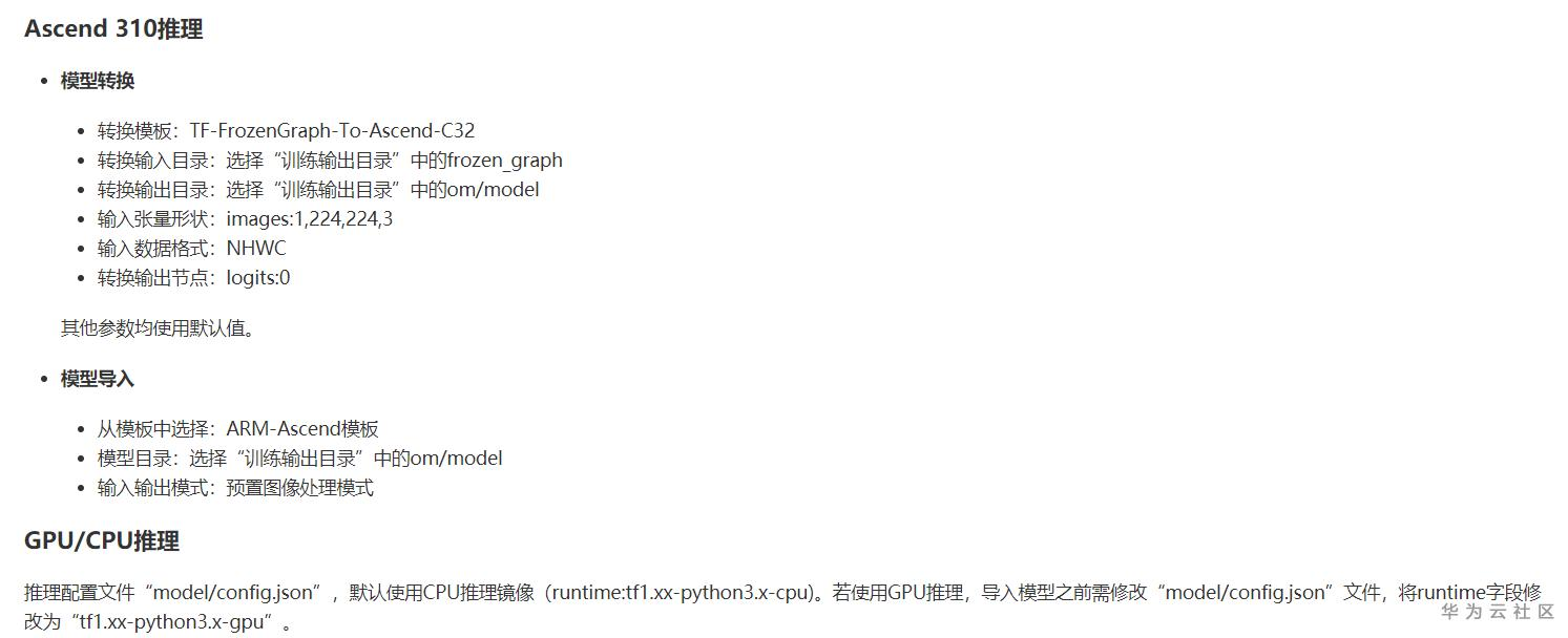 默认是使用CPU部署推理的,当然选择GPU和Ascend也可以,可参考算法页面的介绍。