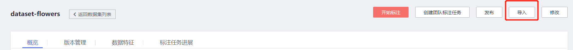 点击数据集,进入数据集界面,选择右上角的导入