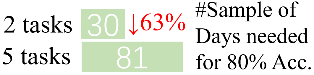 如果按冷机来划分任务,每个冷机任务至少需要81天的样本。但如果按照型号划分为2个任务,每个型号任务仅需30天的样本。这是因为每个型号任务包含多台冷机采集的数据。