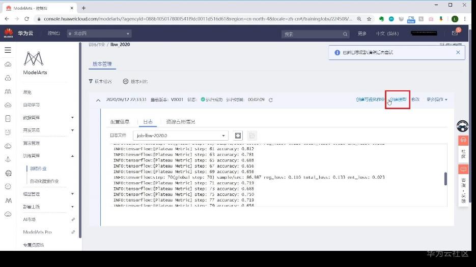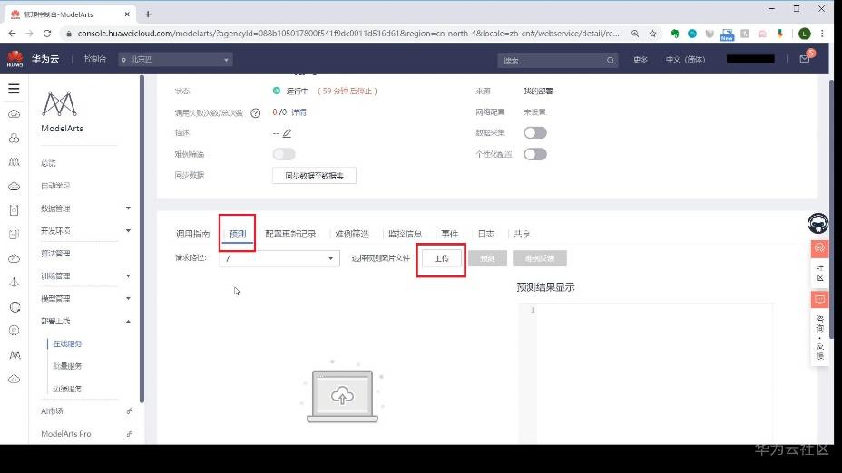 训练完成后,进行创建模型。创建过程中把这个项目部署为在线服务,然后等待模型被导入(此步骤需要几分钟),选择部署为在线模型。最后,只需要填写名称参数,并选择相关的资源部署服务。等待几分钟成功后,就可以直接上传照片进行测试了。