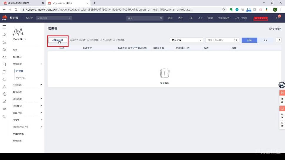 首先,在华为云OBS存储服务建一个新的桶(可以理解成文件夹)。创建成功后点击界面左侧“对象”,新建一个文件夹,用来存储照片。之后进入ModelArts平台界面,通过选择并创建训练集,开始上传照片数据集,并标注分类。输入位置就是刚刚创建的文件夹的OBS地址,可新建一个output文件夹作为输出位置。
