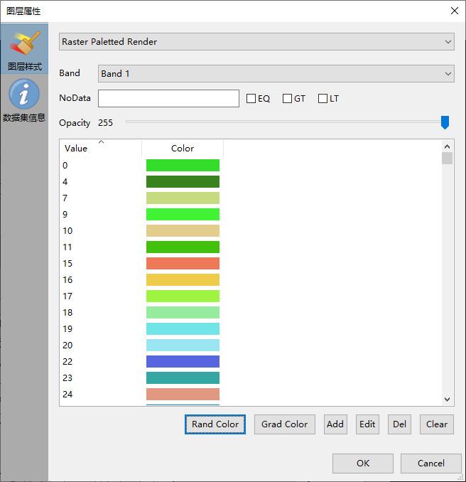 单纯用灰度表示某个通道区分度可能不够,或者不合理。此时可以定义具体的渐变色表,然后将像元值映射成渐变色表上对应位置的颜色进行显示。