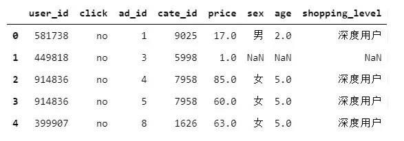 这是一份淘宝平台的广告展示/点击数据,本次分析需要从这些数据中发现某些规律或者异常,进而给运营团队提出建议。