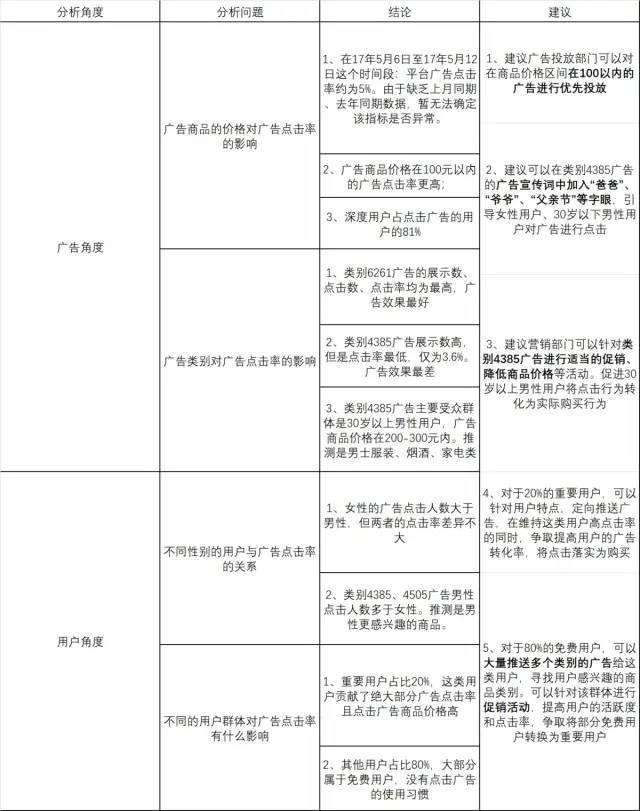 看到价格较低的广告商品点击率更高,我们一般认为是对价格敏感的浅层用户(免费用户)在这方面的点击率更高,而拥有一定消费行为和消费意识的中层、深层用户(付费用户)则更在意购物时的体验以及商品的质量。