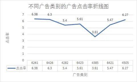 类别6261广告效果最好,有最高的点击率、展示数和点击人数。可以加大对该类别广告的资源投入,扩大广告推广效果。