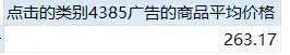a.先按【广告商品价格】来分析计算没有被点击的类别4385广告的商品的平均价格