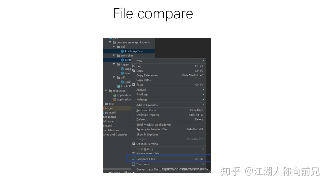 4、File compare 文件对比。某知名文件对比需要付费,但是我们平常可能只会用到一部分基础功能,其实直接用webstorm内置的即可。