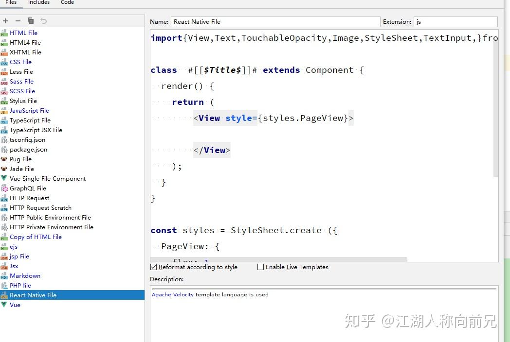 这是我之前设置的react native 文件模板