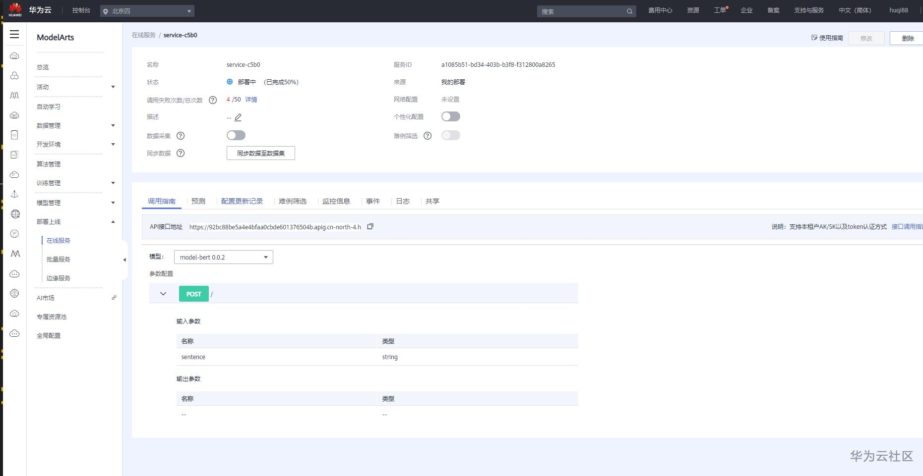 对我来说,目前开(拷)发(贝)一个AI在线服务已经如探囊取物,毕竟ModelArts平台就提供了各种Copy的能力:您可以基于自动学习开发AI在线服务;您也可以基于预置算法或者订阅算法训练并部署AI模型;您还可以从AI市场直接订阅模型来开发AI在线服务,甚至还可以直接从OBS加载元模型。总之,也许您没有AI基础,通过一站式AI开发平台ModelArts就能开发并部署一个AI在线服务。为了更加简便,我采用的OBS元模型方式,分分钟部署一个Bert命名实体识别在线服务。