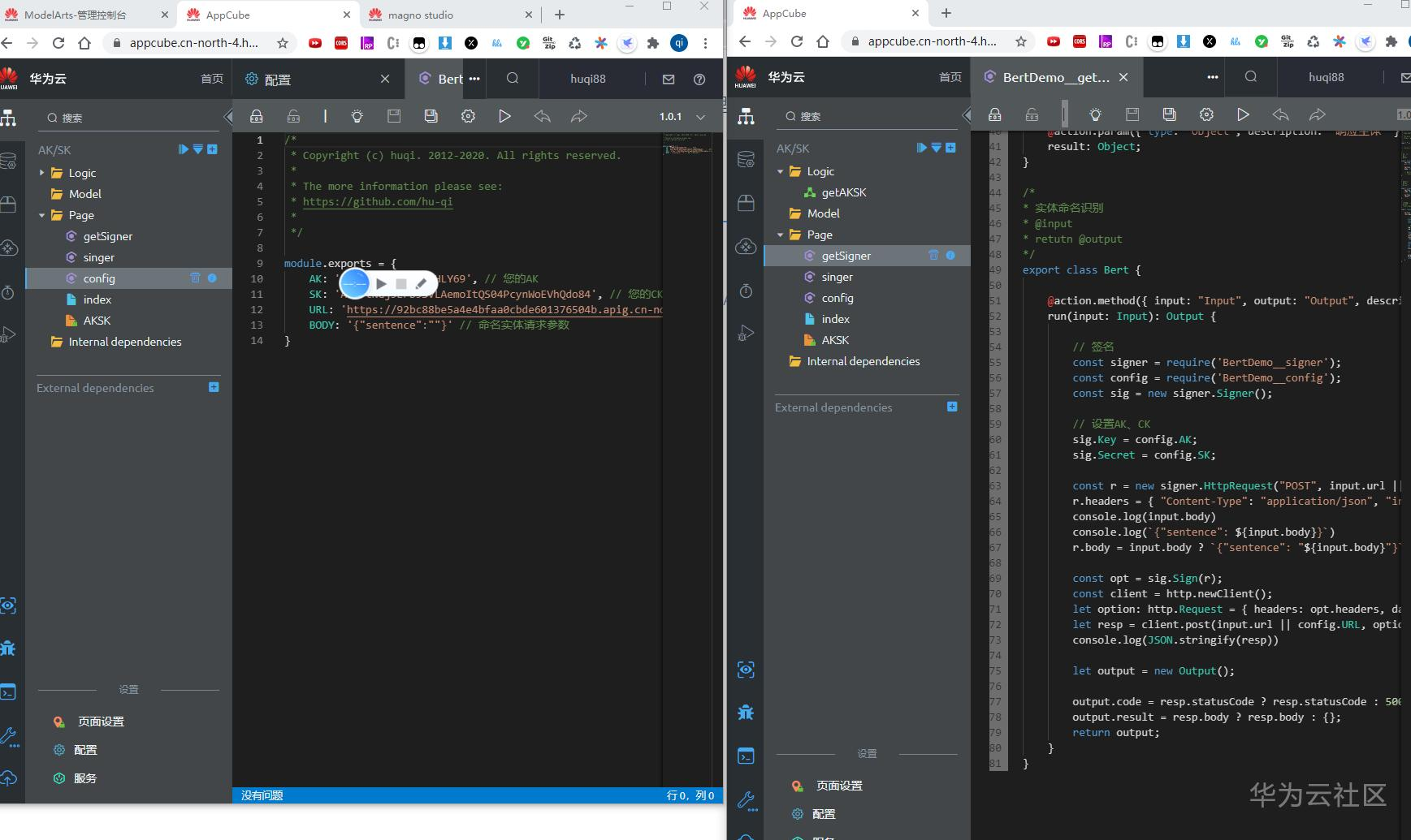 华为云的一站式开发平台ModelArts和应用魔方AppCube居然能玩到一起,这是可能是华为云官方自己也没想到的场景,而我,从8月份开始体验公测应用魔方AppCube以来,一路坎坷,从给AppCube提Bug,到等待新版本发布完毕,再一步一步摸着石头过河,一直在探索AppCube与ModelArts的结合,缘由很简单--我希望低门槛开发AI应用、低门槛落地AI应用,不过,差强人意的是我在使用低代码平台AppCube时,还是Copy了好些代码……但我还是坚持探索,今天赶在中秋国庆双节之际,终于跑通了我的第一个落地Demo--命名实体识别。可以说这是前所未有的体验!