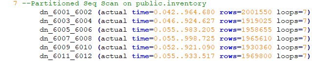 Inventory表有7个分区,所以就执行了7次表扫描操作,因此loops=7。