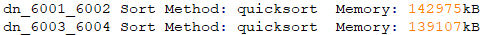 Sort Method代表排序的方法,包括quicksort(快排)和disksort(外排)。快排即内存够用时,所有的排序操作均在内存中完成,外排说明当前可用内存不足,需要下盘。