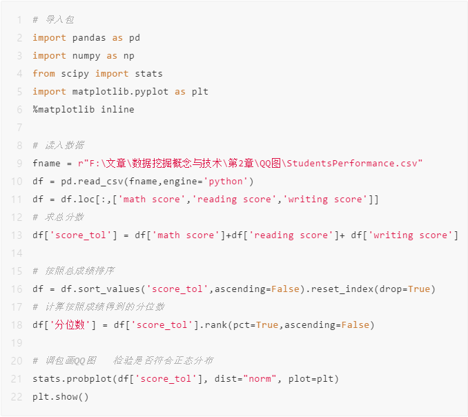 我们先通过调用python包来画QQ图 检验是否符合正态分布