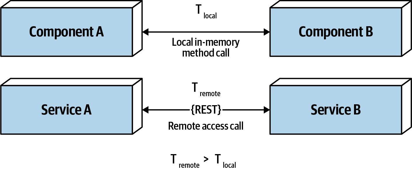 如上图所示,服务内组件间的函数/方法级别的调用,耗时是微秒,甚至是纳秒级别;但是服务间的远程调用(比如REST、消息队列、RPC),耗时会是毫秒级别,甚至在异常场景会达到了秒级!在设计系统,特别是分布式系统时,时延是一个无法被忽视的因素,我们必须清楚系统的平均时延,否则设计出来的方案可能根本不可行。比如,假设系统中服务间通信时延为100ms,如果一个请求的调用链涉及到10个服务,那么该请求的时延将会是1000ms!这么高的平均时延对于一般系统来说是完全无法接受的。